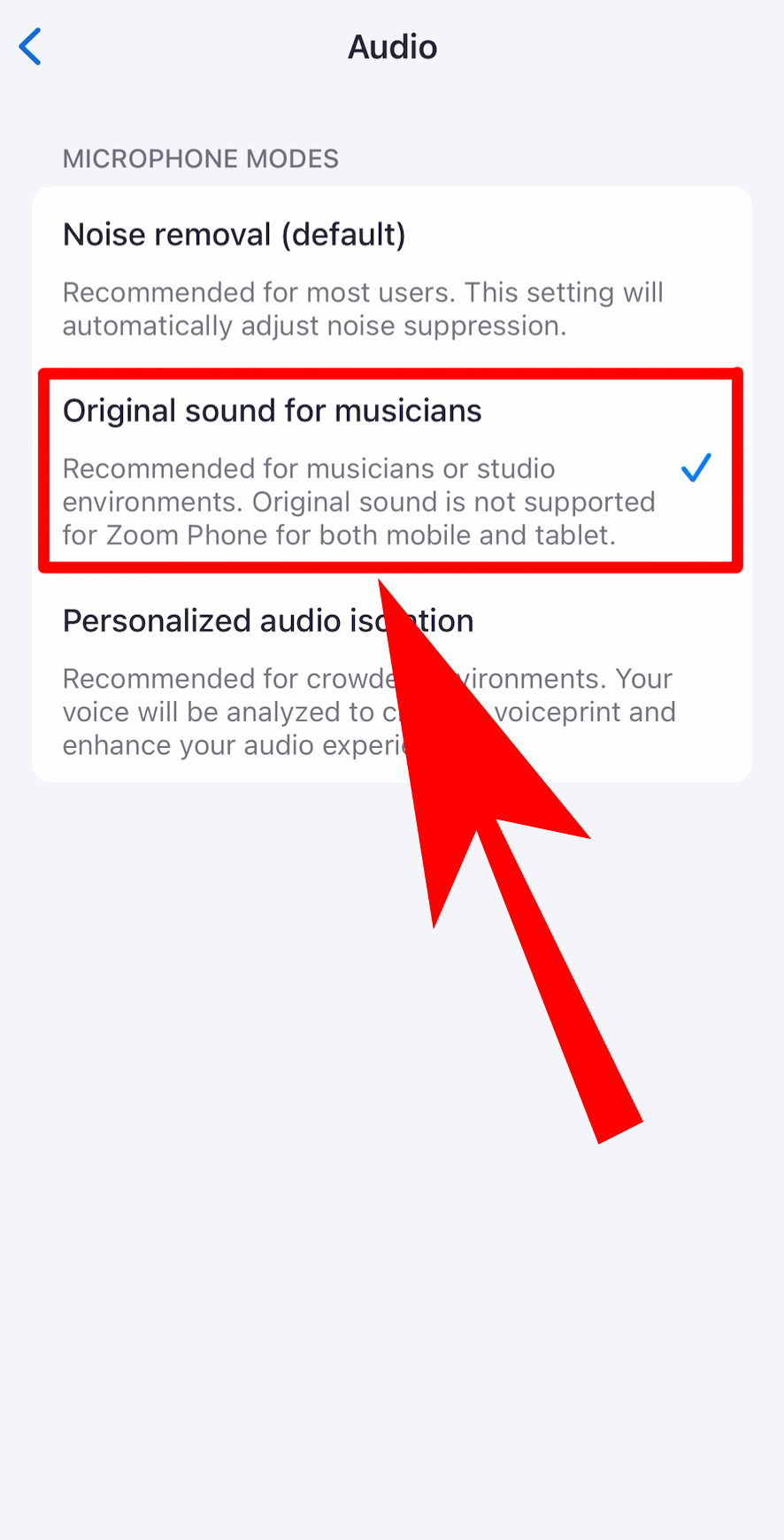 3. Scroll down to Microphone Modes and choose Original sound for musicians.